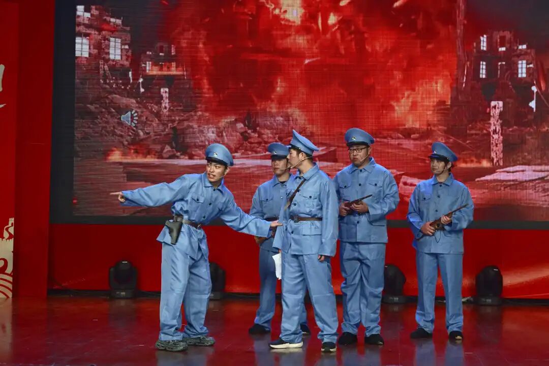 活动中,师生党员自创自编的红色话剧《传承铸魂,恒进担当》成为亮点。话剧分为四幕,以时间为线索,展现了从“九一八”事变到辽沈战役再到新时代的东北发展历程,生动再现了革命先烈在艰苦环境下不屈不挠、保家卫国的英雄气概,以及新时代青年传承红色精神、建设家乡的坚定信念。剧中,学生党员通过细腻的表演和深情的台词,将革命先烈的英勇事迹和红色精神传递给观众,让观众在感受艺术魅力的同时,深刻体会到东北地区红色历史的厚重与伟大。