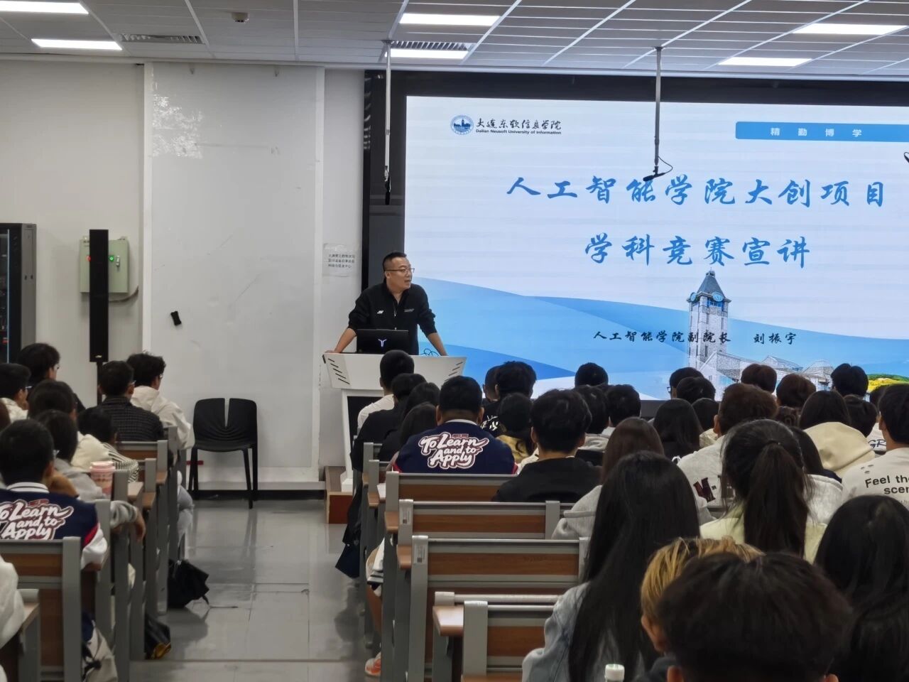 为深化人才培养内涵,全面提升学生专业素养,10月9日18:30,人工智能学院在博川校区E5-109教室成功举办关于学科项目与竞赛的主题宣讲活动。人工智能学院党委副书记周洁美慧、2025级全体素质教师出席活动。本次活动由2025级素质教师金艳主持,人工智能学院副院长刘振宇担任主讲人,2025级全体学生现场参与。