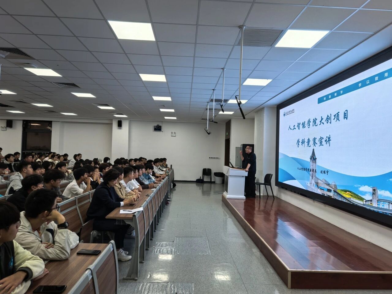 宣讲会上,刘振宇副院长以“学科竞赛与人才培养”为核心,系统阐释“以赛促学、以学促用”的良性循环机制。他指出,学科竞赛并非专业学习之外的“附加项”,而是深化理论认知、转化实践能力的“练兵场”,通过解决竞赛中的实际问题,能推动学生将课堂知识转化为创新思维与实操能力,助力培养兼具扎实专业功底和创新精神的新时代人工智能人才。