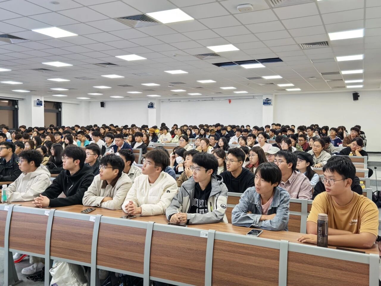 针对当前行业竞争态势,刘振宇副院长用数据直观呈现就业挑战:“2024年头部企业算法岗录取率仅0.8%,竞争难度远超常规升学考试。”面对同学们关切的目光,他提出“破局三刀刃”:专业基础、竞赛经历、实践能力。“学习要‘精准发力’,把时间花在刀刃上。”他强调,专业课程是塑造核心竞争力的“刻刀”,切忌沉迷“速成技巧”而忽视根本,“专业素养的培育需要‘十年磨一剑’的定力,唯有沉下心打磨基础,才能在快速迭代的行业中站稳脚跟。”