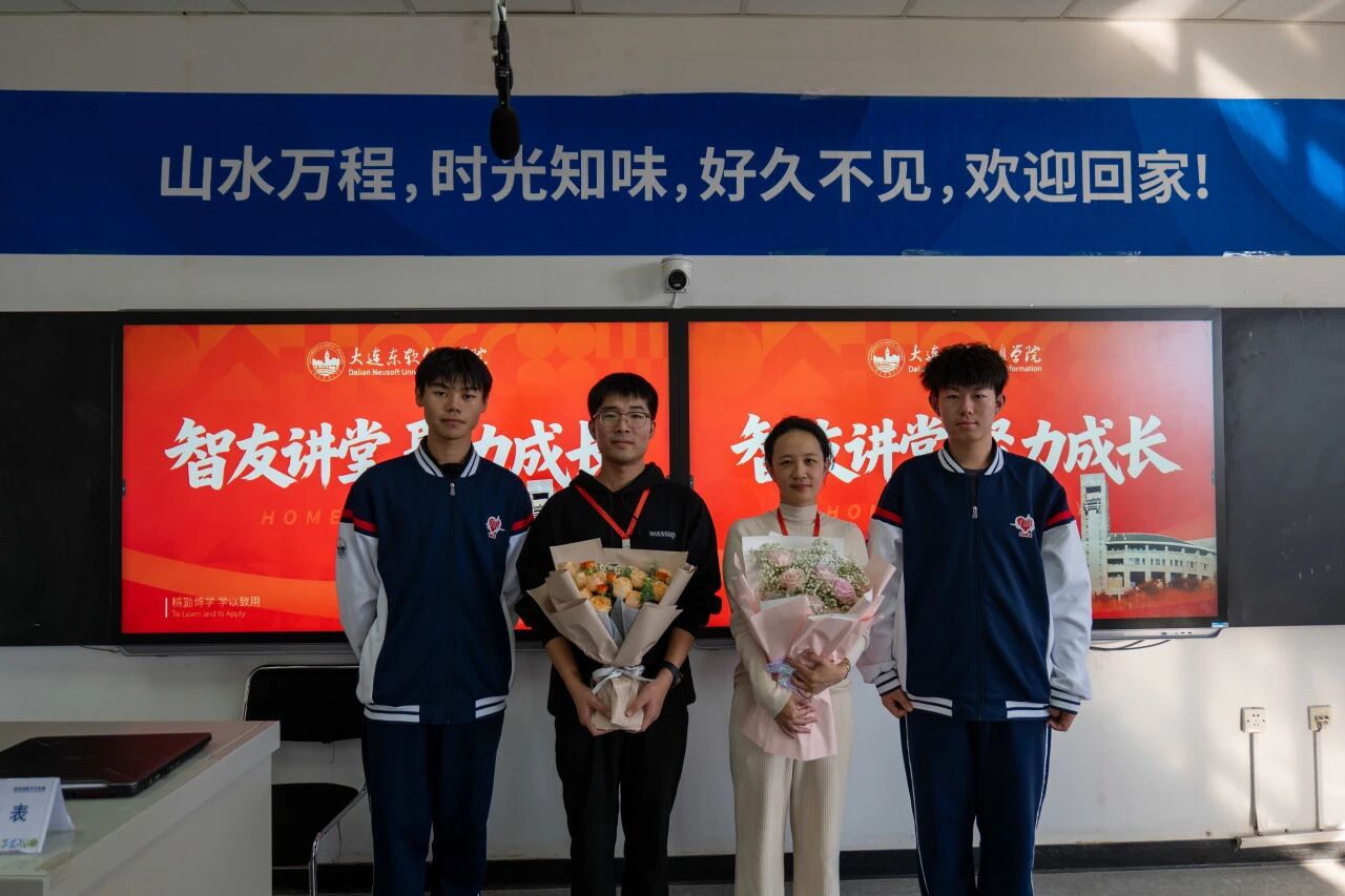 活动尾声,“星火”创新实验班素质教师高经宇对两位校友的倾情分享表示感谢,并鼓励同学们以优秀校友为榜样,既要扎实掌握专业知识,也要主动关注行业动态,提前做好职业规划。同时,也期待未来能有更多优秀校友重返母校,为学院人才培养与学科发展注入更多活力。最后,教师代表与两位校友及现场学生共同合影留念,为本次“智友讲堂 聚力成长”活动画上圆满句号。