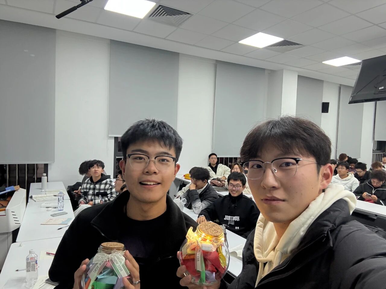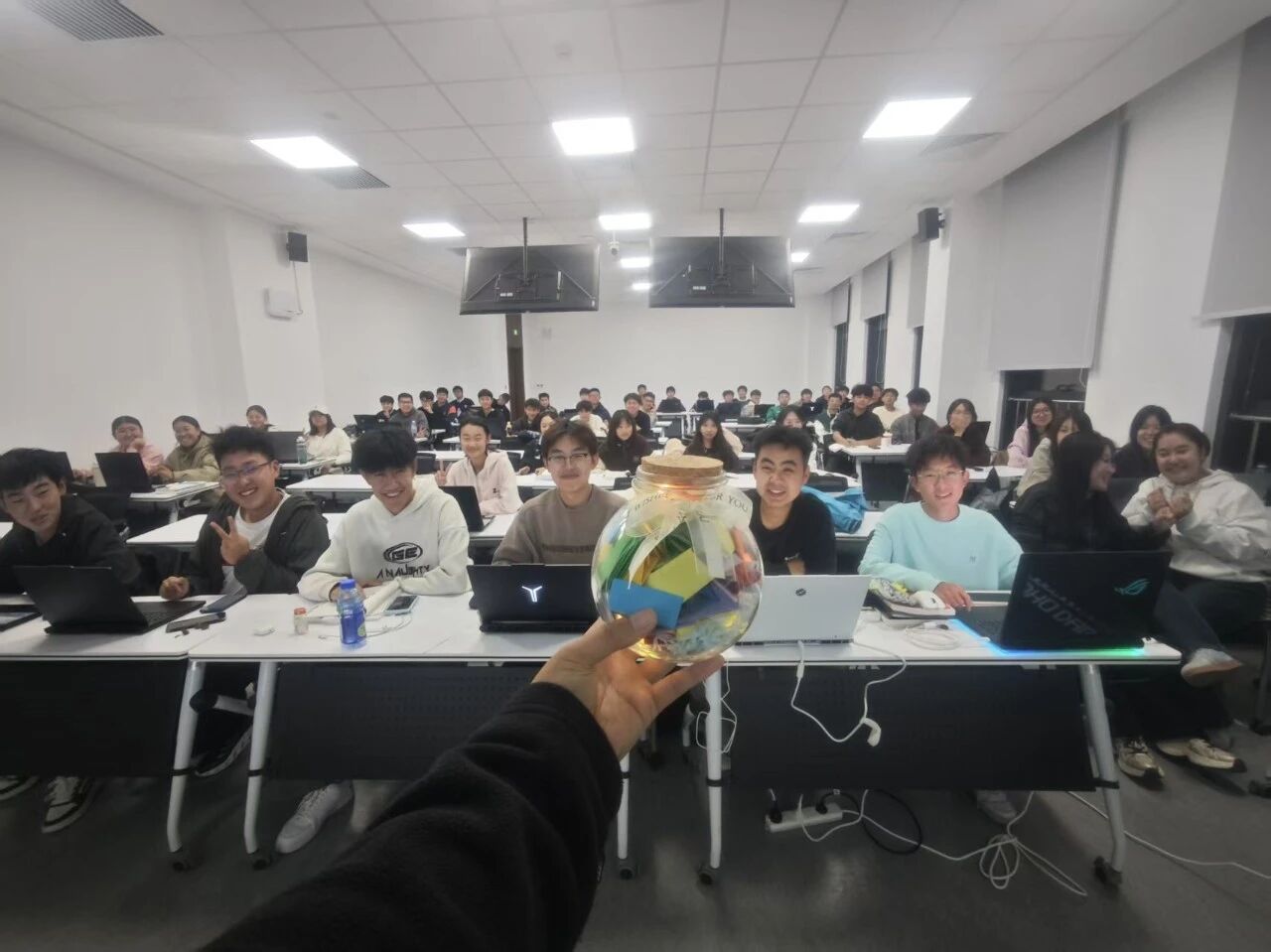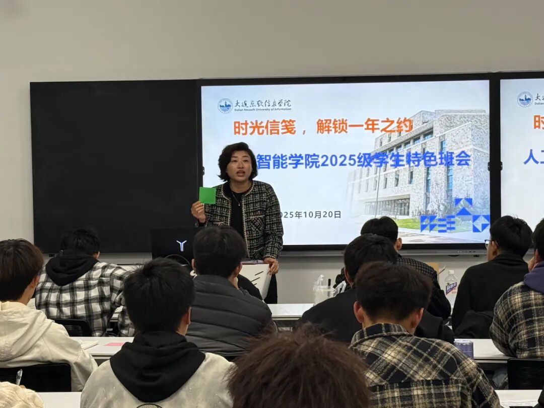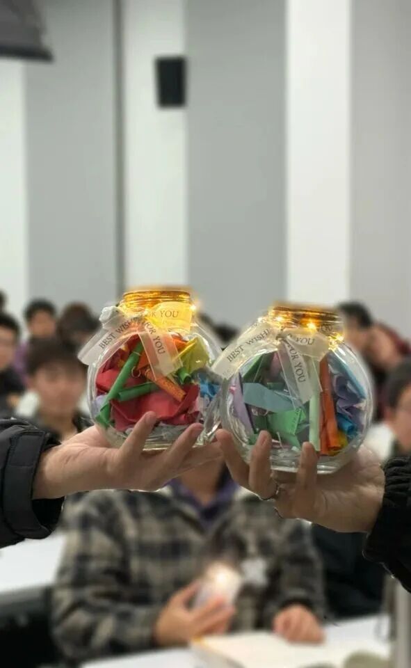 为帮助新生锚定大学初期目标,记录成长初心,近日,人工智能学院2025级素质教师分别组织开展以“时光信笺,解锁一年之约”为主题的特色主题班会。全体2025级学生手持纸质卡片,认真书写对一年后的展望,再将卡片叠卷成不同的形状,小心翼翼地投入许愿玻璃瓶中,立下与一年后自己的“成长约定”。