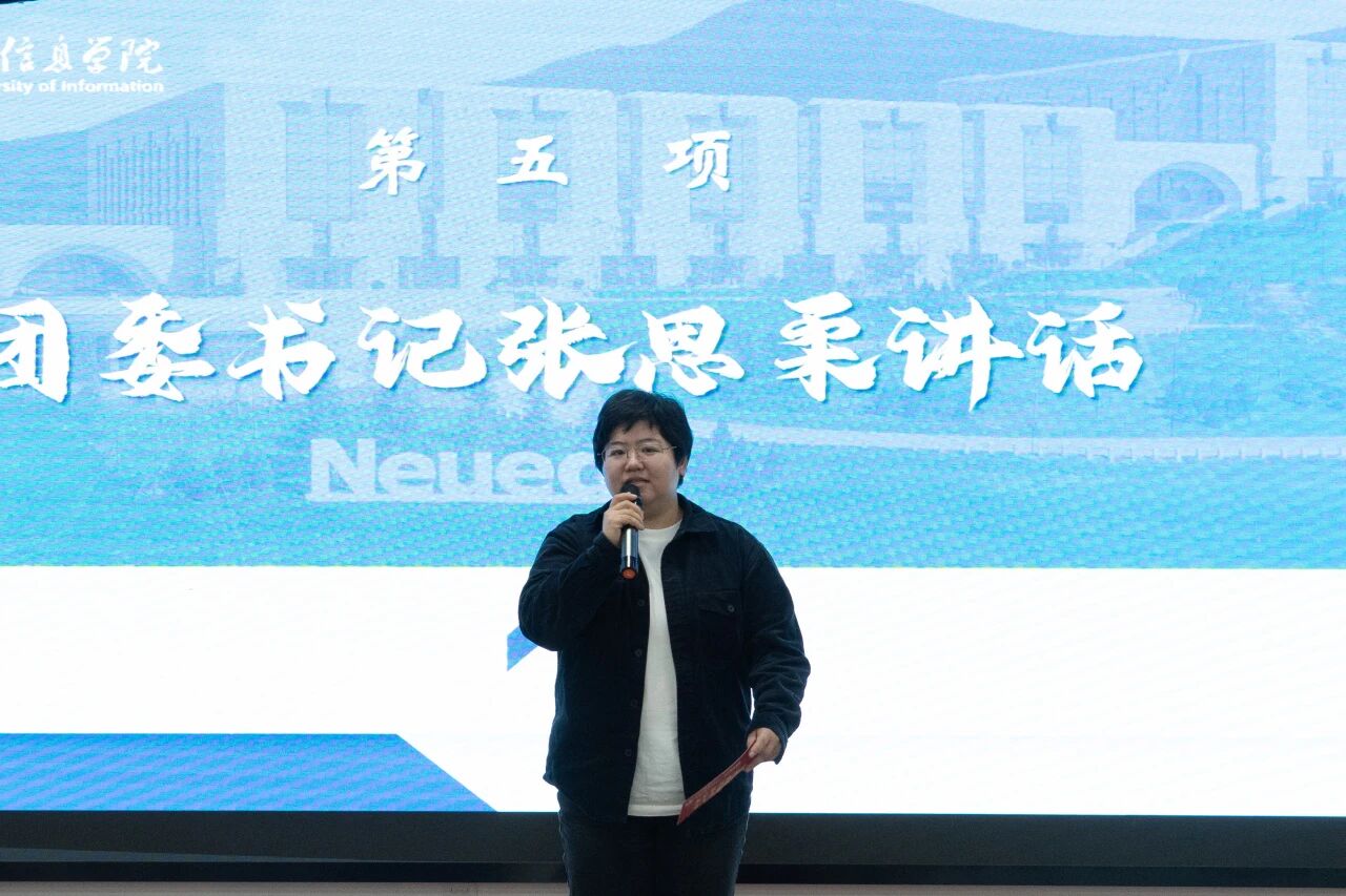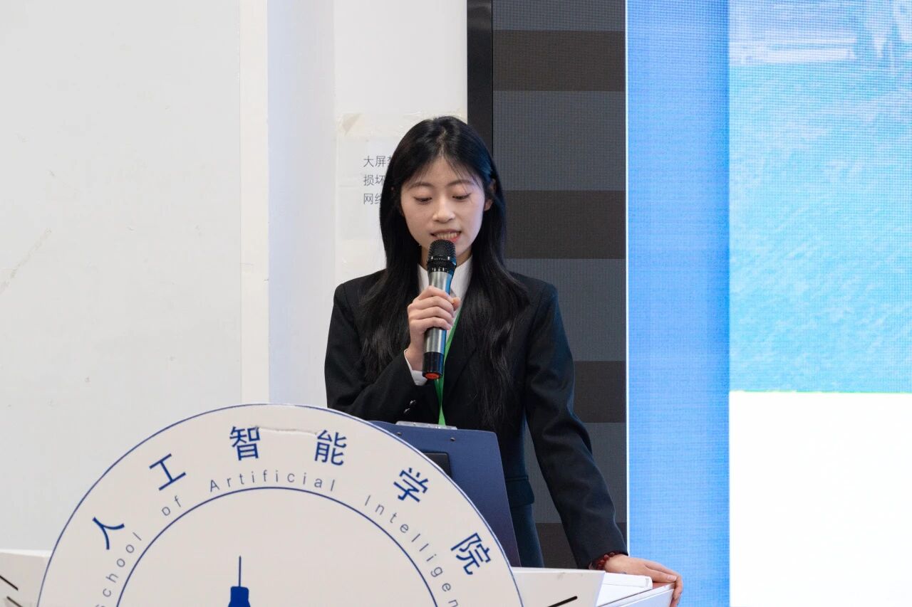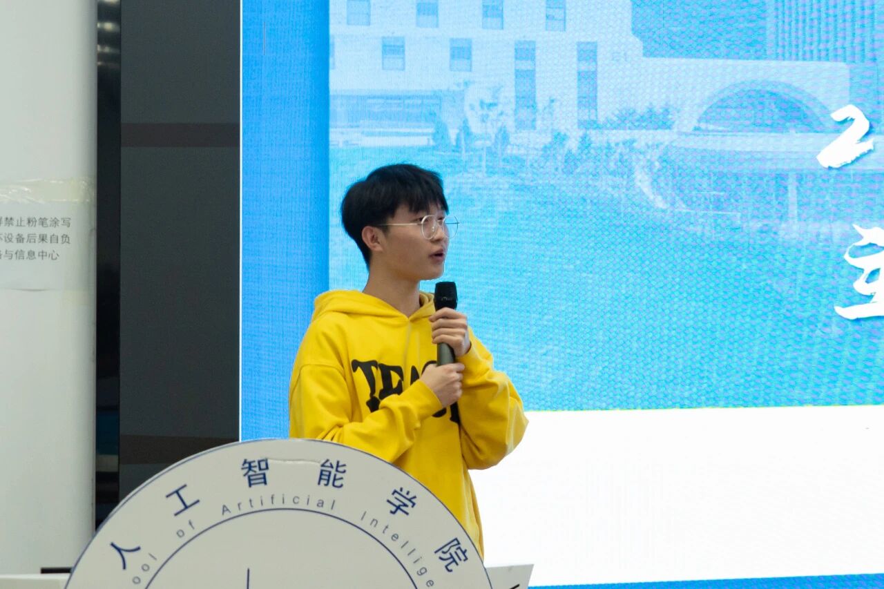 人工智能学院团委学生会上届主席团成员刘宇飞在发言中,首先代表上一届主席团,向始终给予信任与支持的老师、并肩奋斗的学生会同仁,以及给予理解与鼓励的全体同学致以诚挚感谢。他结合自身经历,对下一届学弟学妹们恳切寄语:希望大家秉持“既来之,则安之”的心态,不必畏惧前行中的失败——这段旅程里,最大的收获不仅是能托付后背的挚友,更是在直面并解决问题时,逐渐锤炼出的脚踏实地的韧性。他以“是金子总会发光”激励新一届团委学生会成员,鼓励大家更大胆突破、更富创意,始终贴近同学需求与校园实际,勇于挑战现有工作模式、探索新路径。他还引用博尔赫斯“友谊一旦建立,它便一无所求”的名言,感慨这段经历中沉淀的赤诚之心、协作精神与责任担当,终将成为每个人未来行囊中最宝贵的财富。最后,他送上双重祝福:愿每一位成员都能成长为自己心中期待的模样,也期盼团委学生会在新一届团队的带领下薪火相传、续写新篇,共同助力人工智能学院的未来越来越好。