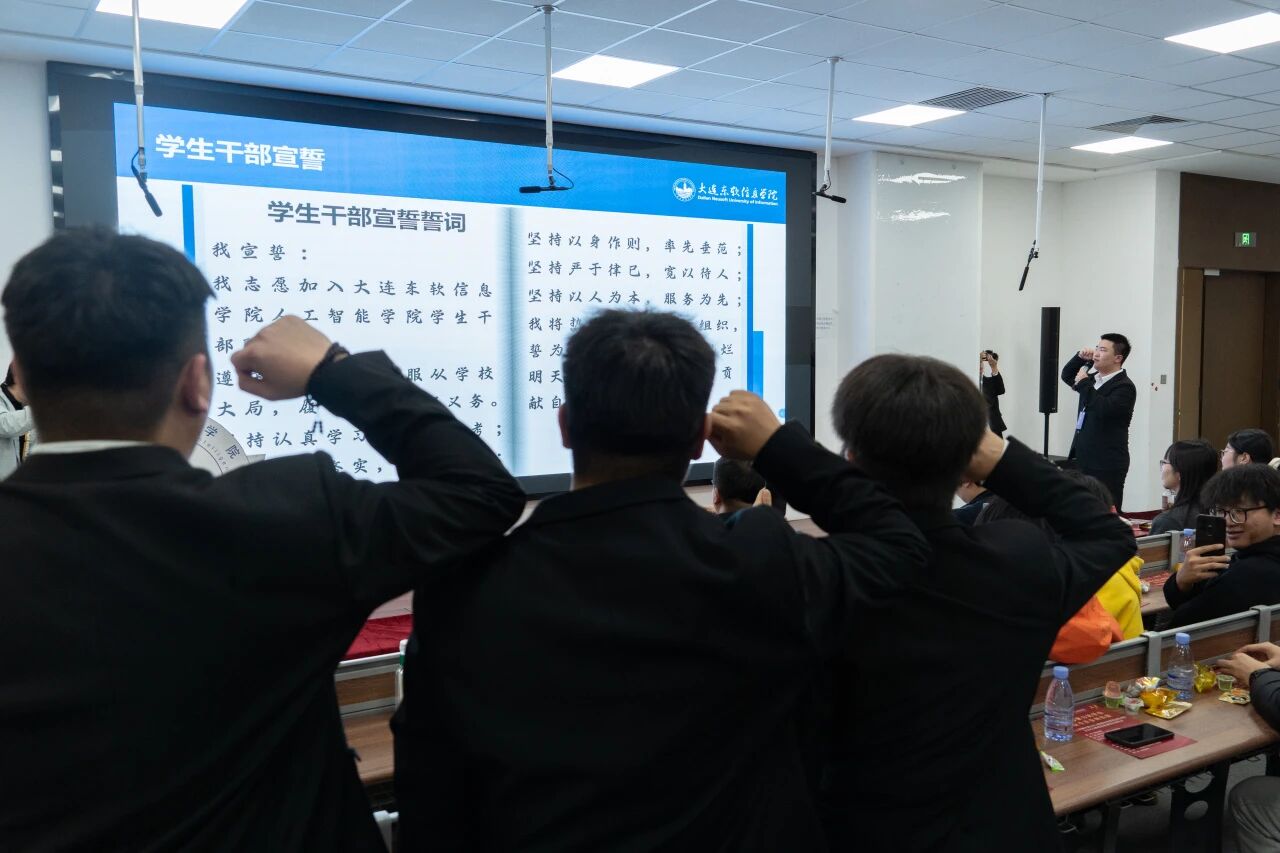 由人工智能学院团委学生会主席郭雨林带领学生干部宣誓: