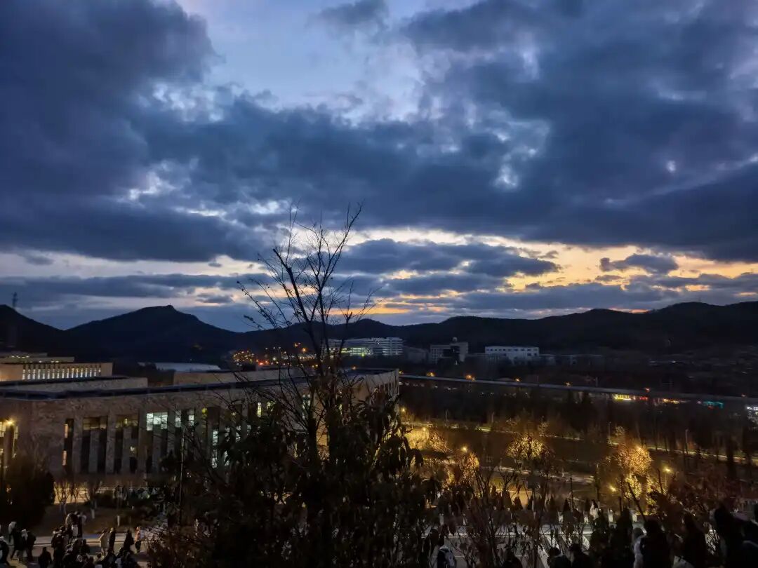 下课铃撞碎夕阳,学校的天空被染成蓝莓汽水的颜色,同学们的身影三三两两并肩走,欢声笑语讲述今天的趣事——那是我们的“每日限定浪漫”。