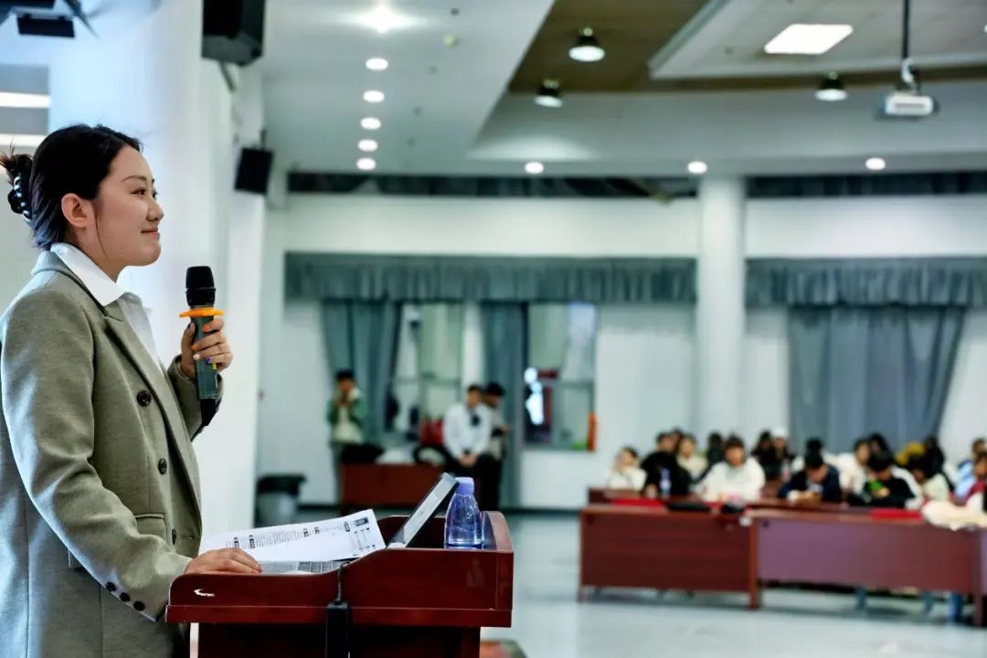 赵媛媛老师毕业于沈阳航空航天大学人力资源管理专业,职业经历覆盖上市企业招聘HR与技术、海外销售团队HRBP双岗位,拥有丰富的行业经验。在讲座过程中,赵老师凭借深厚的专业知识与风趣的讲解风格,将复杂的简历制作技巧及面试策略解构为通俗易懂的知识点,引发了在场学生的浓厚兴趣。现场氛围热烈,学生们积极提问,与赵老师展开深入的面对面交流。