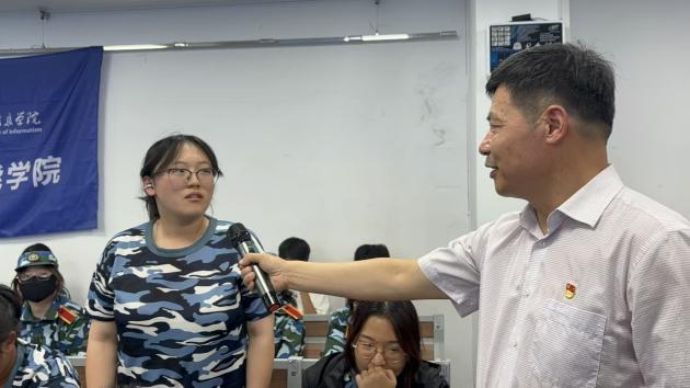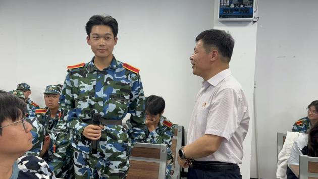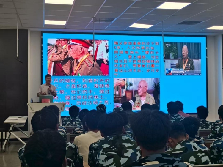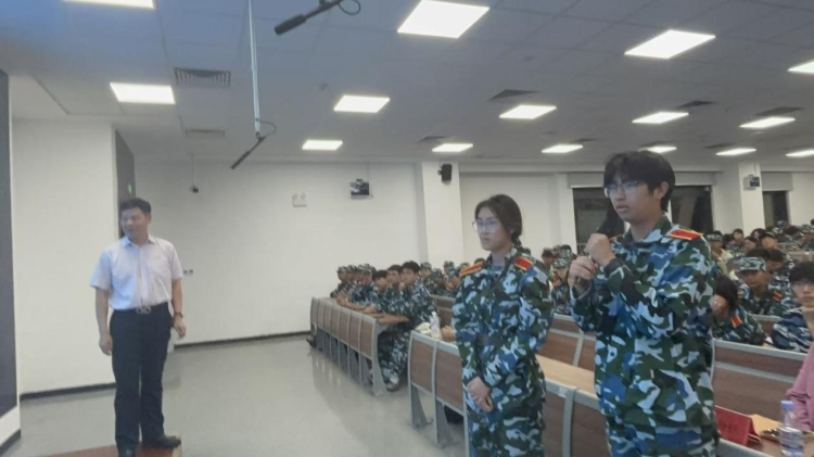 为让新生直观感受“志气”的力量,李老师深情讲述左权将军的绝笔家书,字里行间“以身许国”的家国情怀直击人心;同时,他凝重提及南京大屠杀、抚顺平顶山惨案等历史惨案,警醒同学们:铭记历史并非沉湎伤痛,而是为了从苦难中汲取奋进的力量。结合九三大阅兵中青年官兵展现出的责任担当,李老师指出,新生军训正是磨砺意志、树立志向的“特殊战场”,鼓励大家将个人理想与国家发展紧密相连,锚定2035年基本实现社会主义现代化、到本世纪中叶把我国建成富强民主文明和谐美丽的社会主义现代化强国的宏伟目标,找准人生航向。