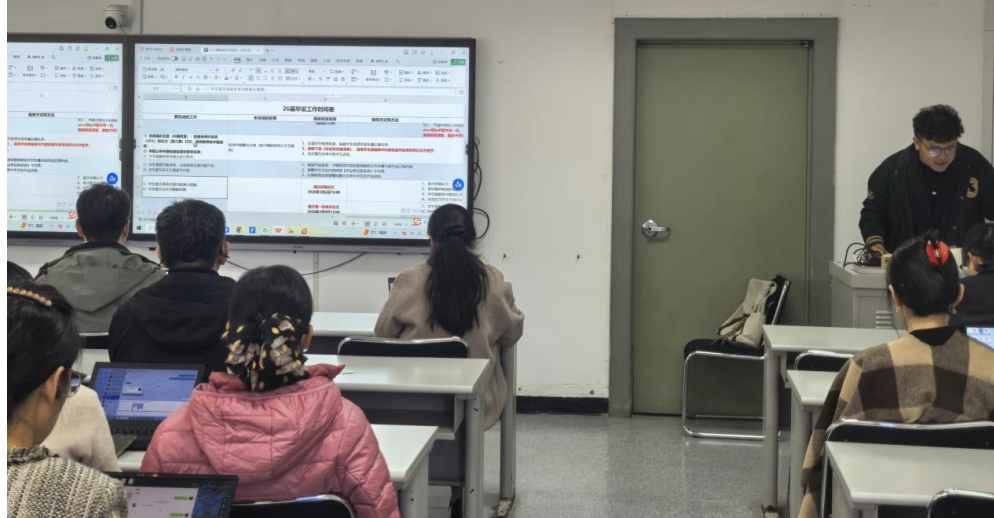 分享伊始,刘钢老师以“毕业设计全过程精细化管理”为题,系统梳理了2026届毕业设计工作的时间节点和质量要求。通过精心设计的时间轴图表,他清晰展示了从选题、开题、中期检查到论文答辩各阶段的具体安排,并重点强调了每个环节的考核标准和注意事项。