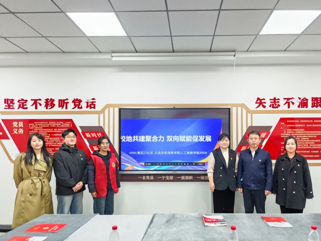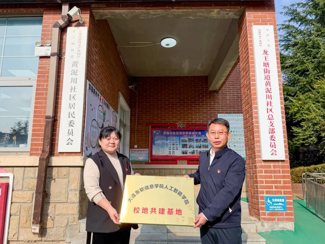为深入贯彻落实新时代党的建设总要求,深化校地党组织共建机制,推动高校党建与地方服务深度融合,11月5日上午,大连东软信息学院人工智能学院党委书记姜大伟、党委副书记周洁美慧、团委书记张思柔、党委组织员王钰智及教师党员代表吴彩霞一行,赴黄泥川社区新时代文明实践站举行“校地共建基地”挂牌仪式,黄泥川社区党总支书记王贤明携社区主要工作人员热情接待并共同参与了此次活动。此次挂牌仪式标志着双方三年合作迈入新阶段,将通过党组织联动构建实践育人新平台,培养学生服务基层的实践能力与家国情怀,为推进“一融双高”建设、服务辽宁全面振兴注入新动能。