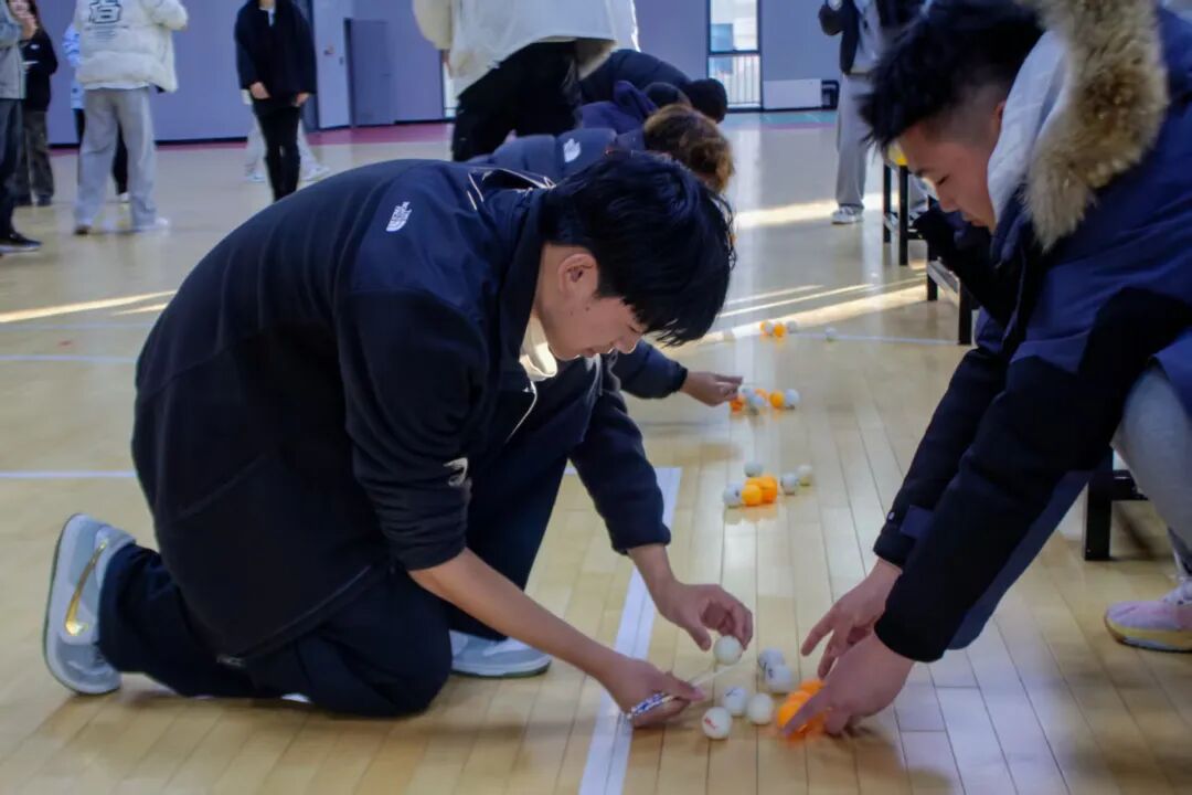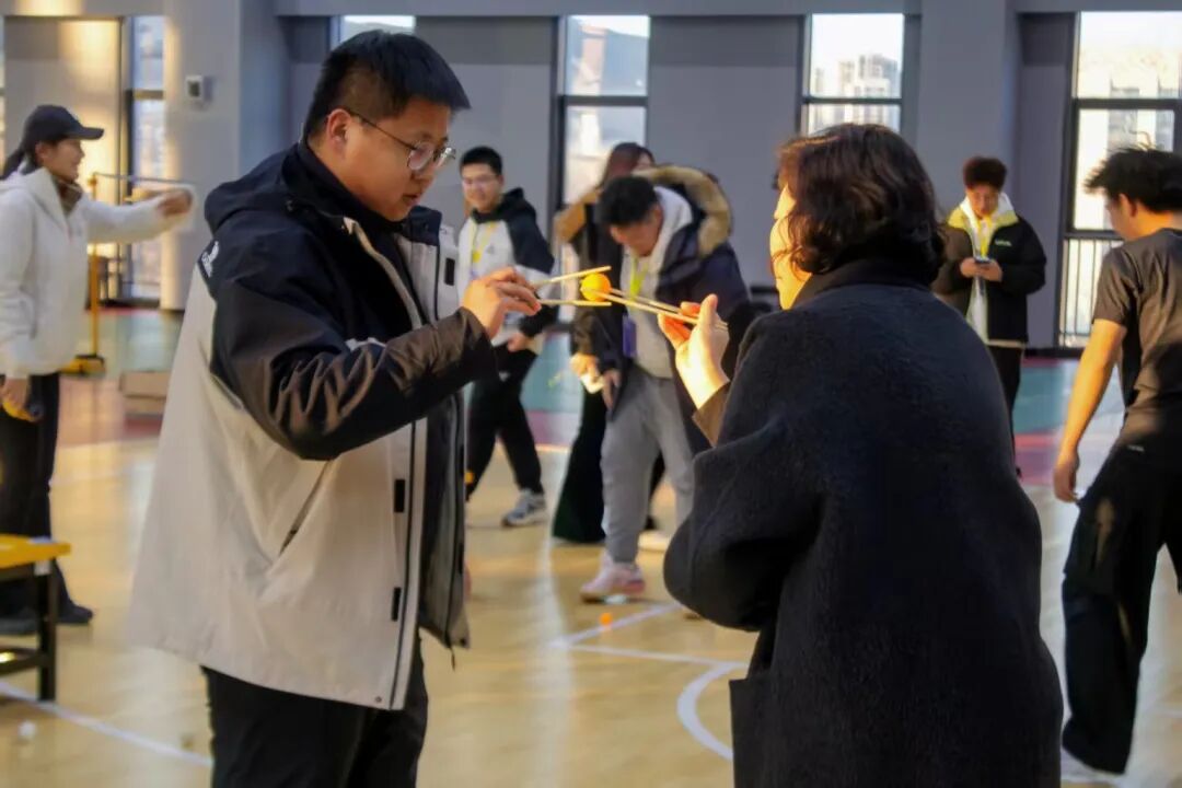 作为开场项目,“筷子运球”瞬间点燃全场。各寝室四名队员一字排开,目光紧锁筷子与小球。裁判员哨声一响,队员们立刻行动——用筷子稳稳夹起小球,小心翼翼又不失迅捷地传递给下一位队友。整套动作行云流水,每一次精准交接都彰显着寝室成员间无需言说的默契,引得场边阵阵喝彩。