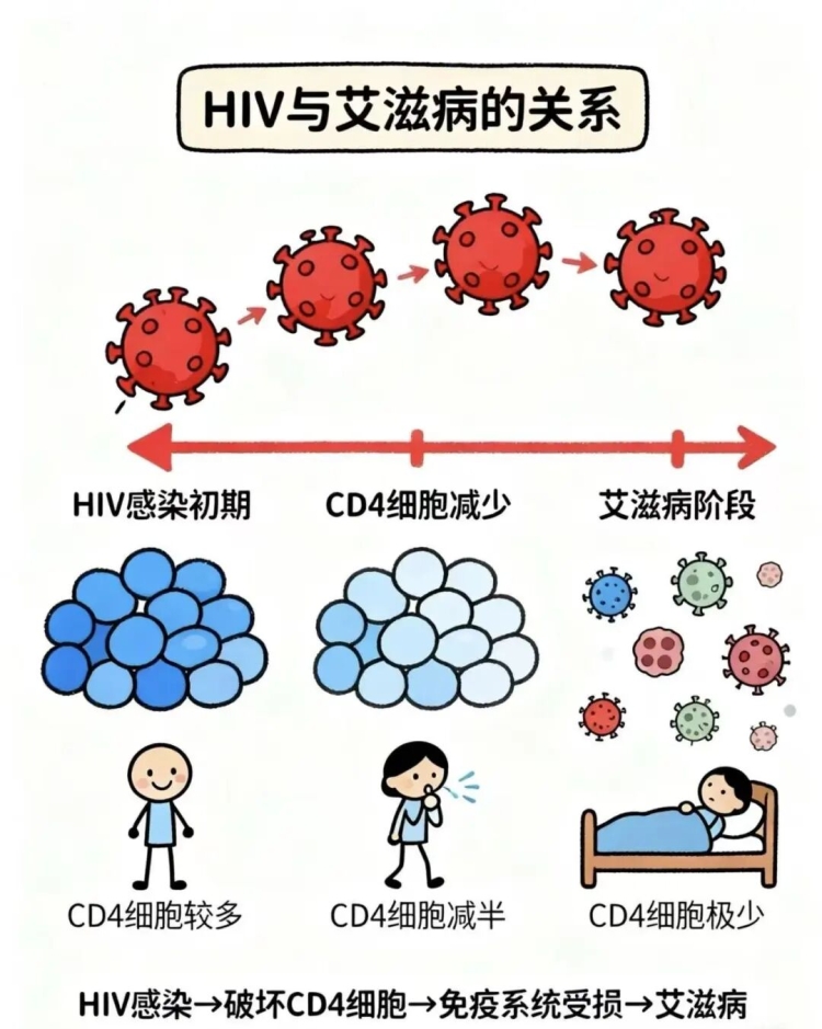 艾滋病全称是“获得性免疫缺陷综合征”(英文名缩写AIDS),由人类免疫缺陷病毒(HIV)感染引起。HIV会逐渐破坏人体免疫细胞,最终导致机体无法抵抗各种机会性感染和肿瘤,具有传播迅速、病死率高的特点,但它并非不可防、不可治。