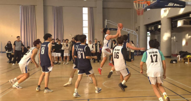 篮球赛场从不是一人的独角戏,而是团队协作的舞台。四强赛的每一次关键传球,都源于日常训练的默契积累;每一次落后时的互相鼓劲,都是逆境中并肩前行的精神支撑。哪怕身体碰撞激烈、体能逼近极限,队员们始终彼此信任,有人拼抢篮板,有人负责策应,有人专注防守,每个人都在自己的位置上全力以赴,用集体的力量冲破难关。这份赛场上的凝聚力,不仅是技战术层面的配合,更是意志与信念的同频,让场边的师生观众为之呐喊助威。