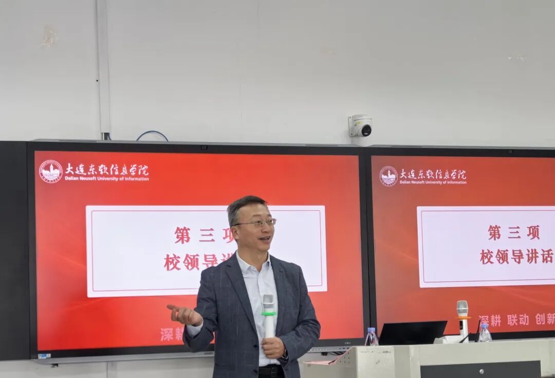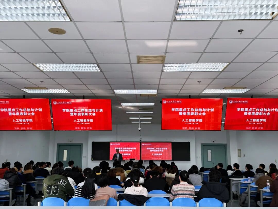 凝聚共识谋发展,砥砺奋进启新程。2026年1月24日上午,人工智能学院隆重召开2025年度工作总结大会暨表彰大会。大连东软信息学院副校长申华,人工智能学院院长刘龙、党委书记姜大伟,副院长郑俊生、王红、刘振宇,及全院教师出席大会。大会由人工智能学院党委副书记周洁美慧主持。