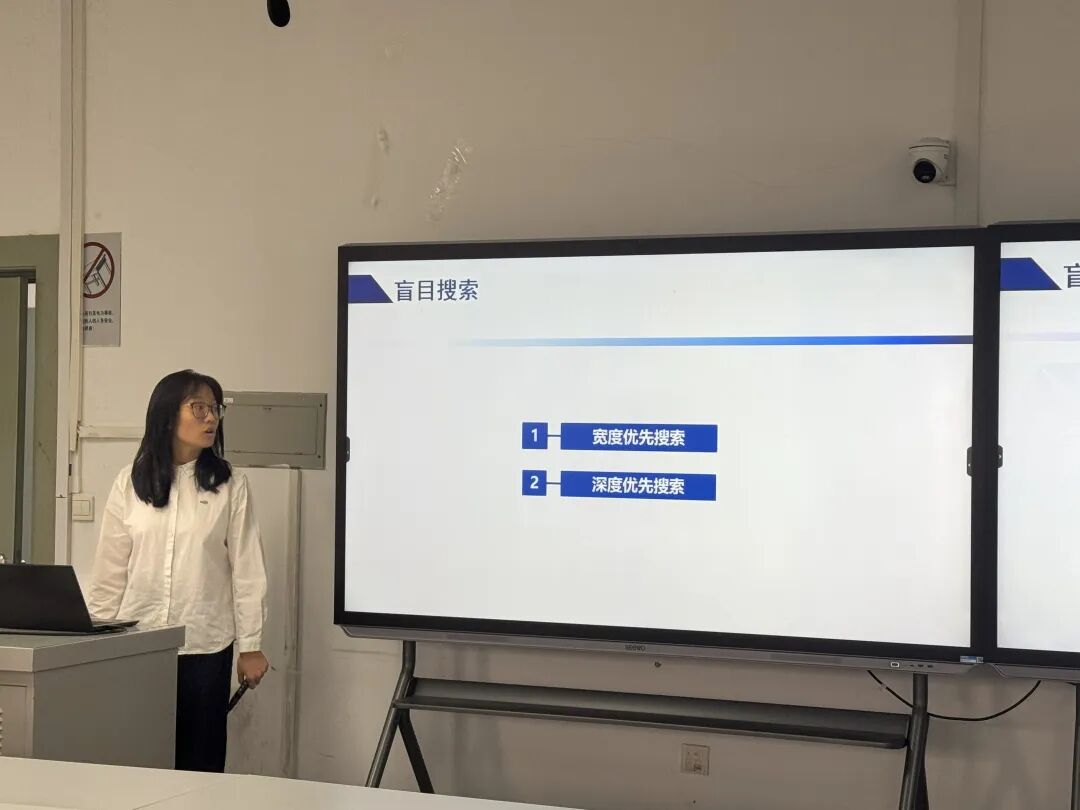 李予诺老师以《人工智能导论》中的盲目搜索为教学内容,系统讲解了宽度优先搜索和深度优先搜索的基本思想与算法流程。课堂通过OPEN/CLOSED表演示和搜索过程示意,结合八数码问题和迷宫实例,对不同搜索策略的特点、适用场景及效率问题进行了分析,帮助学生建立对搜索算法的整体认识。