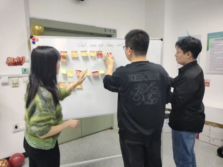 随着期末成绩公布与学生各科成绩、作业档案归档工作顺利落幕,大连东软信息学院人工智能通识Ⅳ课程2025-2026-1学年建设与教学工作圆满收官。1月23日,人工智能通识Ⅳ课程组在A2-207教室召开学期回顾会议,以深度复盘与温情互动为本次教学工作画上完美句点。课程全程践行“AI+Scrum”融合模式,将人工智能技术与敏捷项目管理思维以及快速迭代、勇于创新、拥抱变化的课程特色深度融入教学全流程,为高校通识课程改革提供了鲜活实践样本。