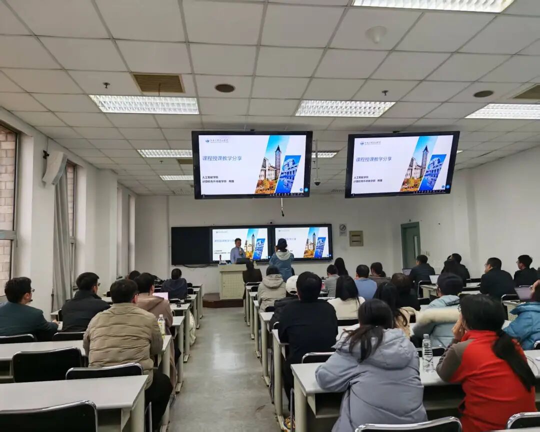 课程建设是人才培养的核心根基,更是我校深化教学改革、提升育人质量的关键抓手。为进一步推广优秀教学实践经验,拓宽教师教学视野,加强跨院系教学交流合作,3月10日,人工智能学院计算机专升本教学部邢路老师应邀,在软件园校区A6-319教室为应用技术学院教师开展“AI赋能教学:课程建设与课堂实战”专题经验分享会。应用技术学院张冬青院长、宋晓莹副院长和贾宁副院长及50余名专业教师、承担授课任务的素质教师参会,共赴一场聚焦教学创新、共探AI赋能的育人交流之约。