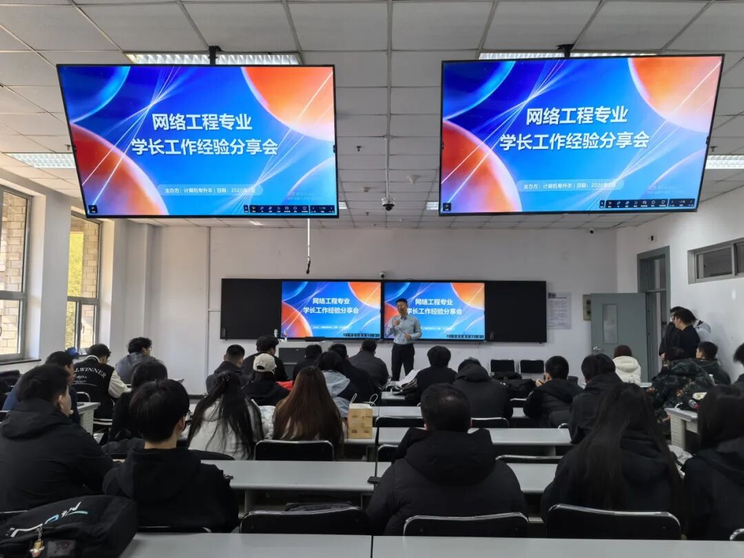 本次分享会现场气氛热烈,掌声不断,在场的网络工程专业的五十多名学子均表示收获颇丰。大家不仅对网络工程专业的就业前景、行业需求有了更具象的认识,也为后续的实习规划、学习提升明确了方向。 青春不虚度,奋斗正当时。相信在专业教师的悉心指导、素质教师的暖心陪伴,以及优秀学长的薪火相传下,人工智能学院网络工程专升本的学子们,必将以扎实的专业能力为基,以积极的进取态度为翼,在即将到来的职场征途中,以笔为剑、以码为甲,勇毅前行,书写属于自己的青春华章!