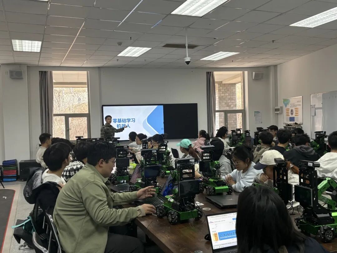 讲座现场,王老师以生动易懂的语言打破同学们对机器人的陌生感;随后聚焦机器人基础结构,拆解机器人的核心组成部分进行讲解,搭配直观的演示,让同学们快速掌握基础理论知识。令同学们最兴奋的是动手操作环节,王老师及助教学长全程悉心指导,手把手带领同学们进行实操演练,耐心解答大家提出的每一个问题,引导大家亲手尝试机器人基础操作,让每位同学都能亲身参与、切实掌握。同学们全神贯注聆听、积极动手实践,在互动交流中逐步消除知识盲区,从机器人小白实现了基础认知的突破。